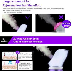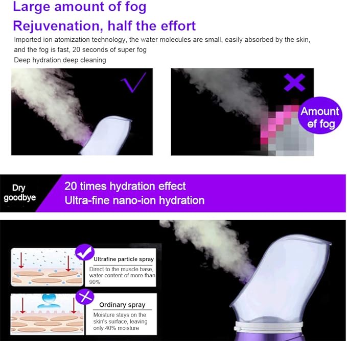 ⏭️ Fast Dimming: Quickly dimmable in 20 seconds, providing a deep moisturizing effect with strong and lasting fog. The nano steamer produces a warm mist that is harmless to the skin, offering an enjoyable experience.